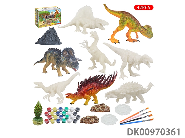 Jurassic world 3: rule - painted 8 7-inch dinosaur white model painting volcanic tree stone set 42 pieces