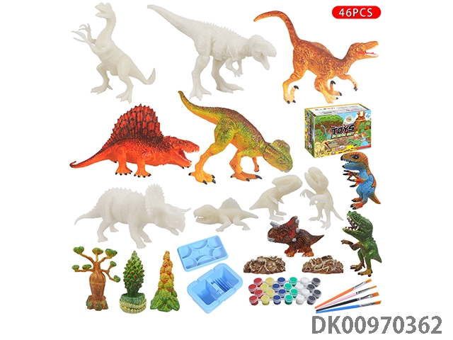 Jurassic world 3: rule diy graffiti painted dinosaurs 6 7-inch dinosaurs and 4 dolls, 2 dinosaur fossils and 1 dragon blood tree white model set of 43 pieces