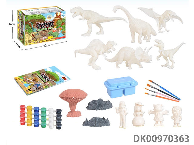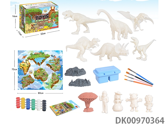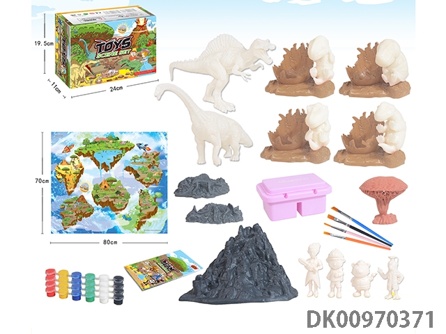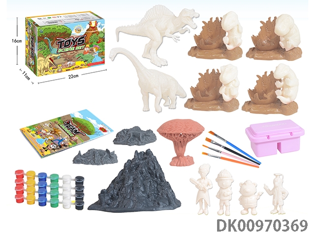 Jurassic world 3: rule diy painted 2 7-inch dinosaurs and 4 painted dinosaur babies with egg base and volcano, 4 puppets, 1 tree and 2 fossils graffiti set 52 pieces