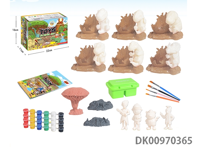 Jurassic world 3: rule diy painted graffiti 6 sets of blank dinosaur baby with egg nest base model and 1 tree and 2 fossils 55 sets
