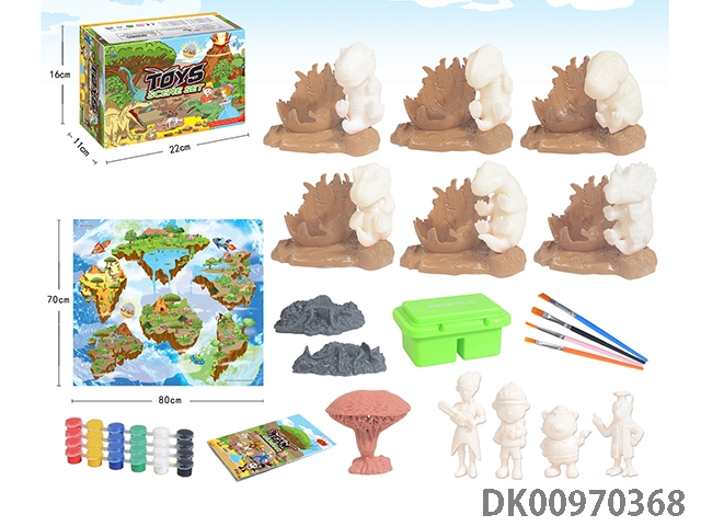 Jurassic world 3: rule diy painted graffiti 2 7-inch dinosaurs and 4 sets of painted dinosaur babies with eggshell base and volcano, 4 puppets and 1 tree and 2 fossils and game mats painted set of 53 pieces