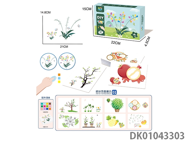 Finger painting flower pattern 12-color printing table and 16 picture cards
