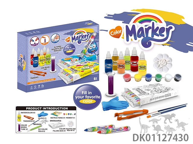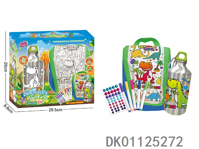 Dinosaur series -2-in-1 graffiti water bottle and handbag (500ml water bottle, 5-color watercolor pen, 1 diamond sticker)