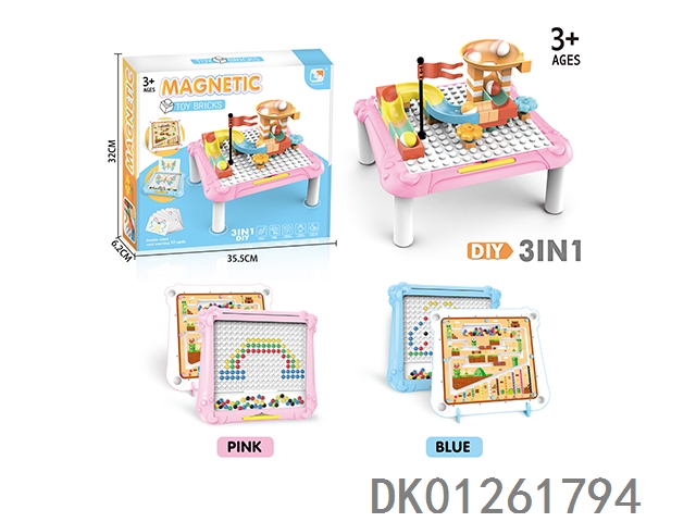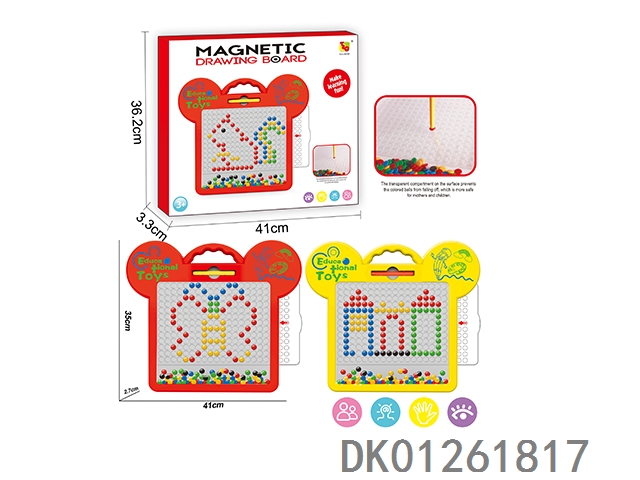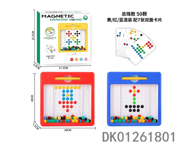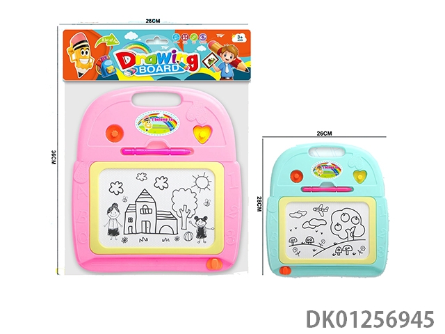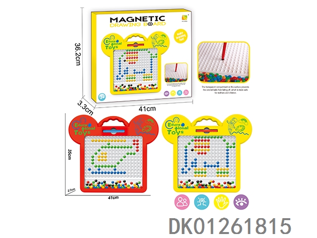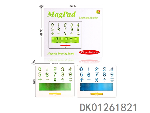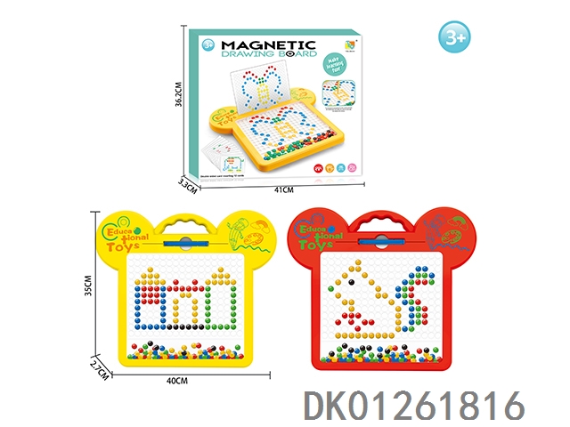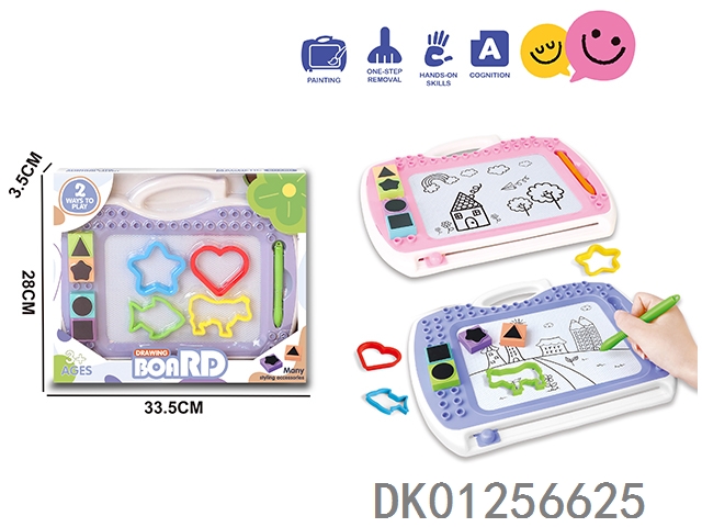 Two display boxes with magnetic colored male and female writing boards, accompanied by pens and accessories