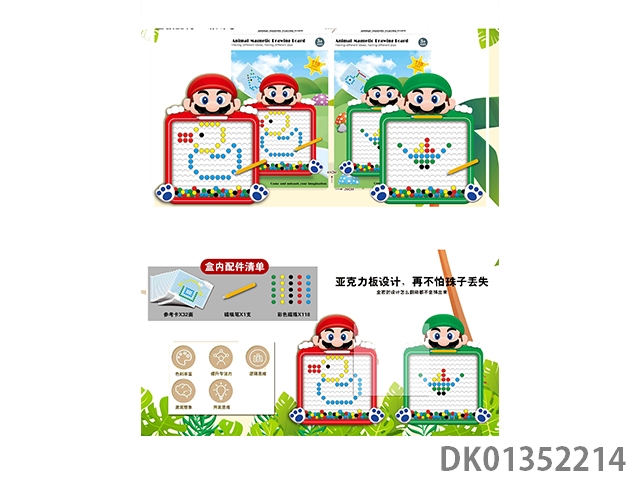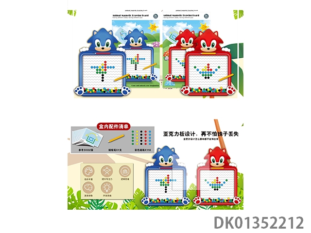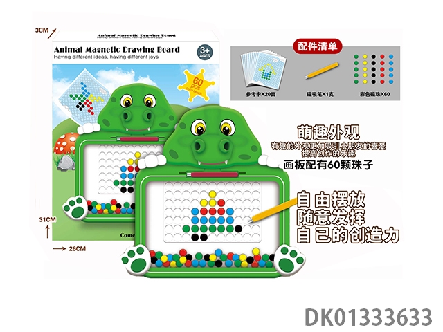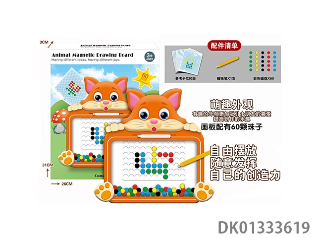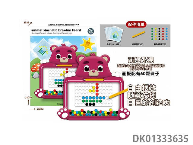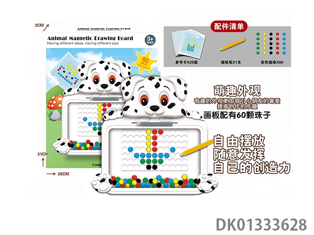 Puzzle animal magnetic drawing board with 60 beads, magnetic suction pen, and 20 reference cards, 1 model