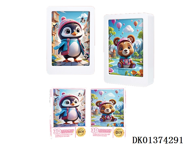 Diy series 3d atmosphere night light music stereoscopic painting (cute penguin and happy bear 2 mixed designs)