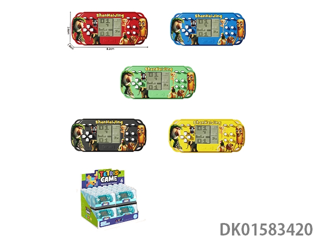 Large vertical cartoon tetris game console, single unit (two no. 5 batteries not included)