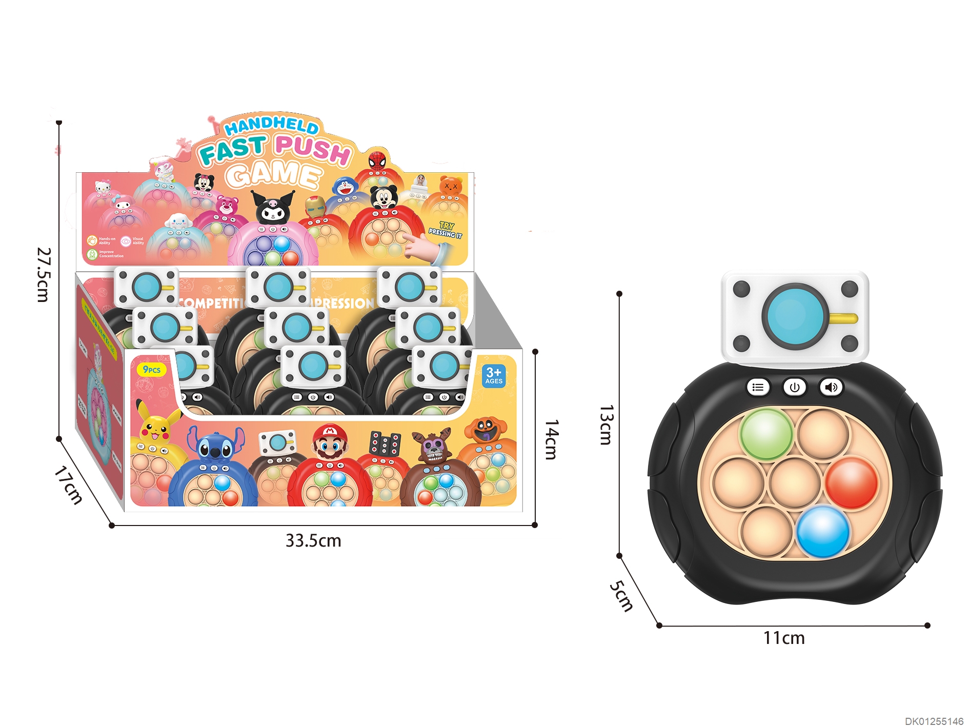Stress relief puzzle mouse killing hard button game console, new 9-button fruit pattern, third-generation 999 levels, 3-color mixed pack, 12 pieces set12PCS/BOX