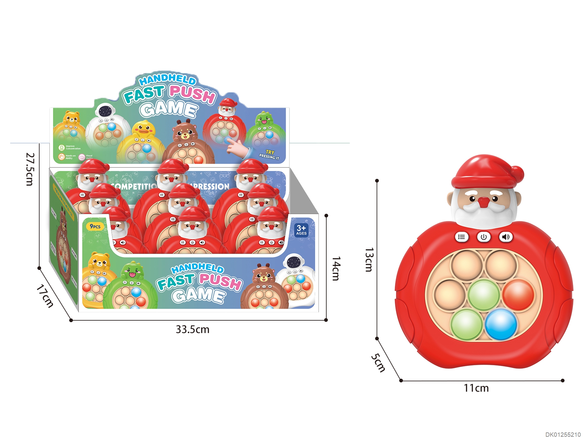 Stress relief puzzle mouse killing quick push silicone 10 button ground mouse pressing game machine santa claus shape 999 challenge button new four color rainbow light