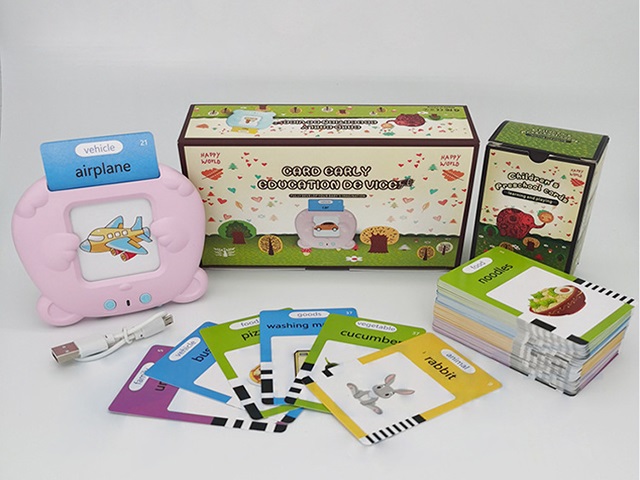 112 Cartoon teddy bear cards with 224 contents, all in english early education card insertion learning machine (mixed blue and pink)