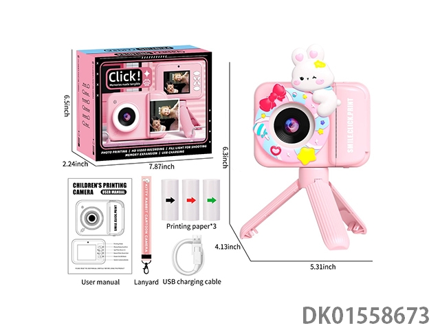 2.4-Inch screen children’s printing camera color (single color) dual camera rabbit (with camera holder silicone protective cover)