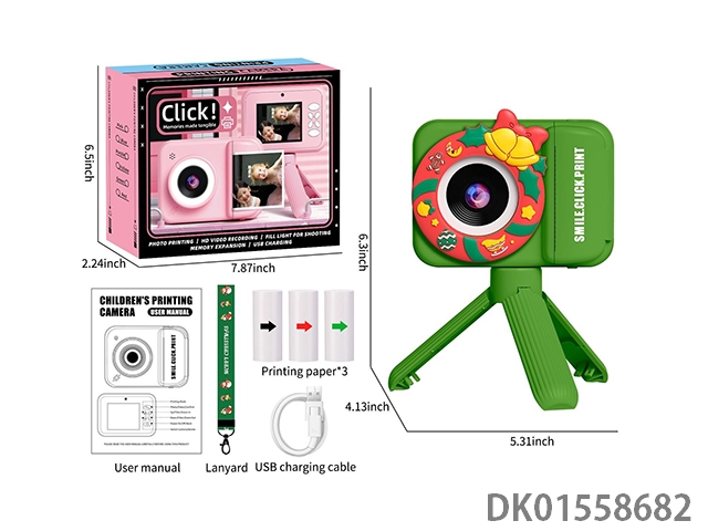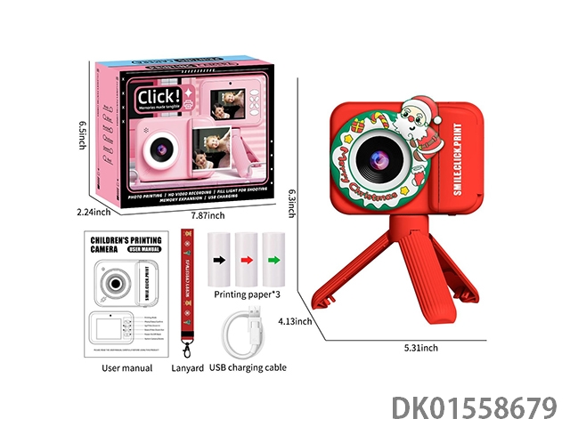 2.4-Inch screen children’s printing camera color (single color) dual camera santa claus (with camera holder silicone protective cover)