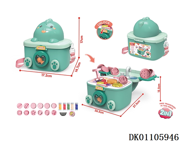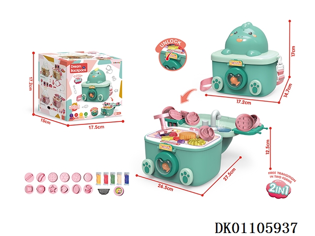 Storage of colored clay dinosaur backpack, color box with water