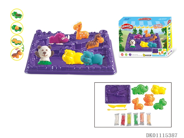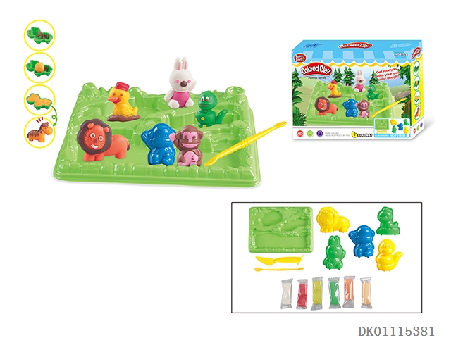 6 Animals with hills and plates series colored clay