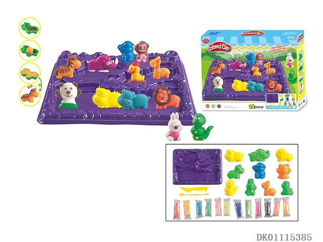 10 Animals with hills and plates series colored clay