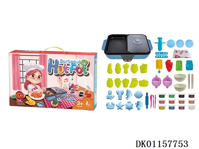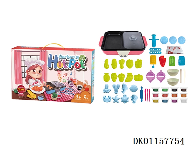 Hot pot colored clay - pink colored clay set (with sound effect, 3 button batteries ag13 included)