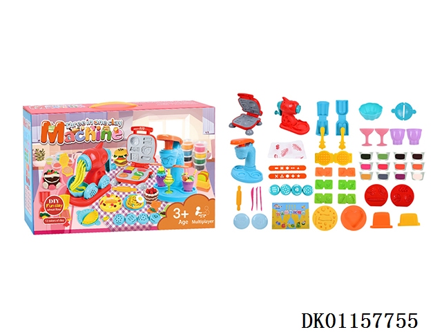 Ice cream machine, noodle machine, and hamburger machine clay set (51pcs accessories)
