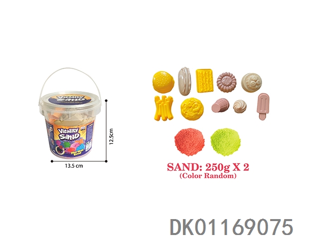 Portable barreled -500g space powered sand and food sand mold set of 10 pieces (2-color sand)