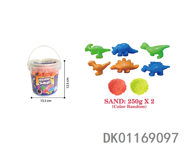Portable barreled -500g space powered sand and dinosaur sand mold 6-piece set (2-color sand)