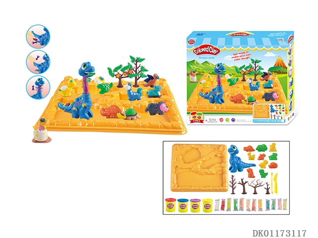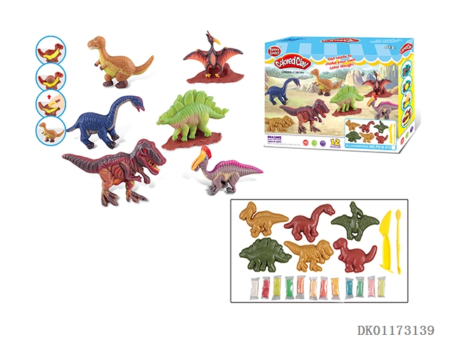 Dinosaur series with 12 colored clay