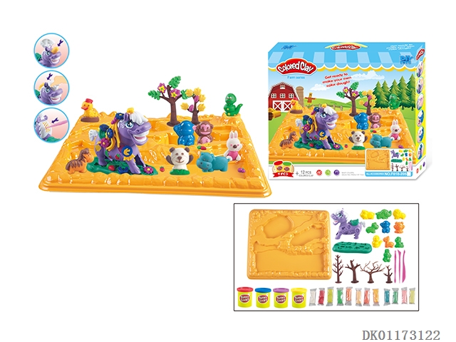 Pony with 10 animals and a series of colored clay with hills and plates