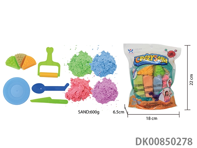Vertical bag - 600g cotton stretch sand and 3 random tools, 3 random cakes and 1 tableware plate (4 color sand)