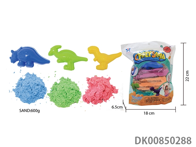 Vertical bag - 600g cotton stretch sand and random dinosaur sand mold 3 pieces (3 color sand)
