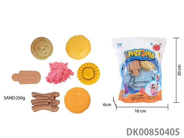 Vertical bag - 300g cotton stretch sand and random geometry jigsaw diy mold 3 pieces and random food 5 pieces (2 color sand)
