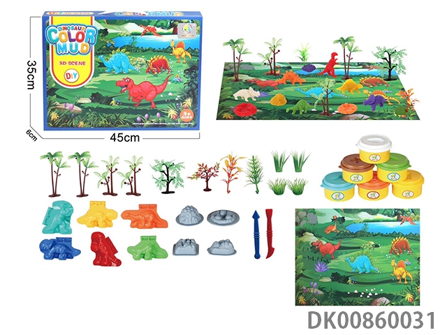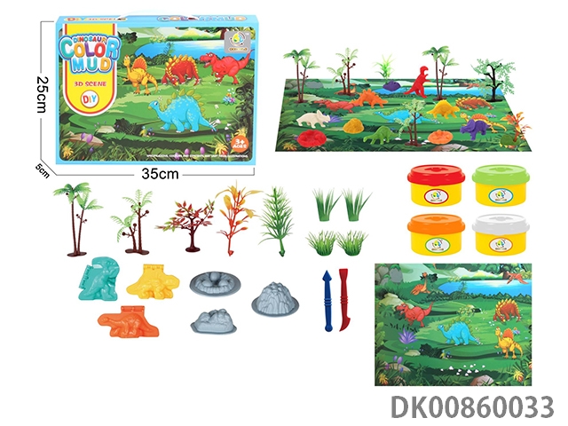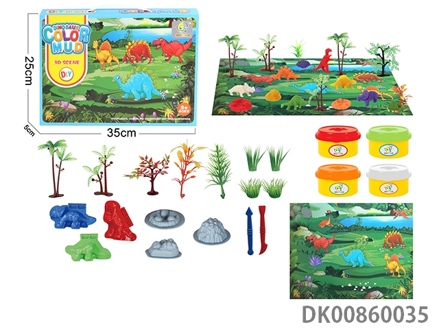 Color box dinosaur scene color mud set (4 bottles, 1 oz)
