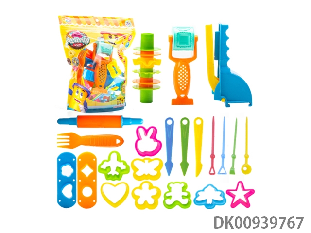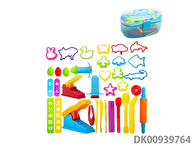 Colored clay toolbox with accessories
