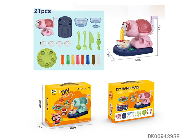 Dinosaur colored mud noodle machine