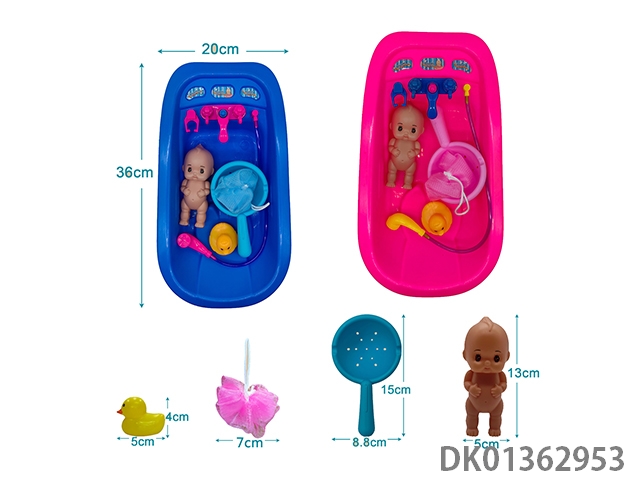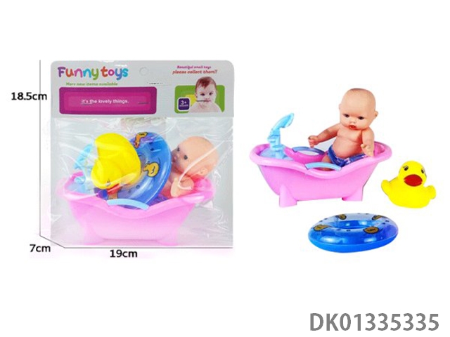 5-Inch emoticon doll and bathtub. swimming circle. duck