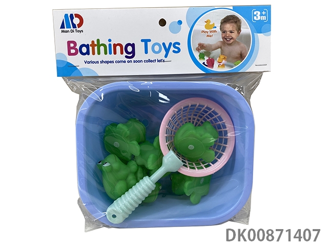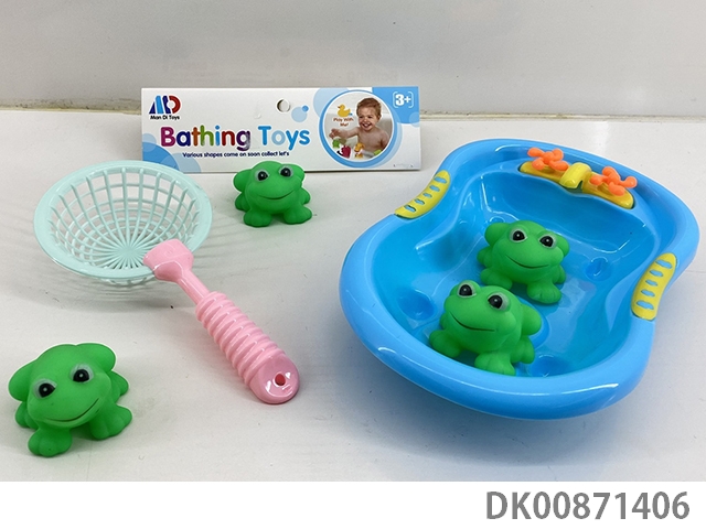 4 Frogs with fishing and bathtub