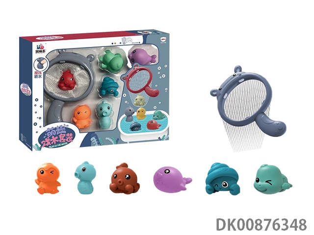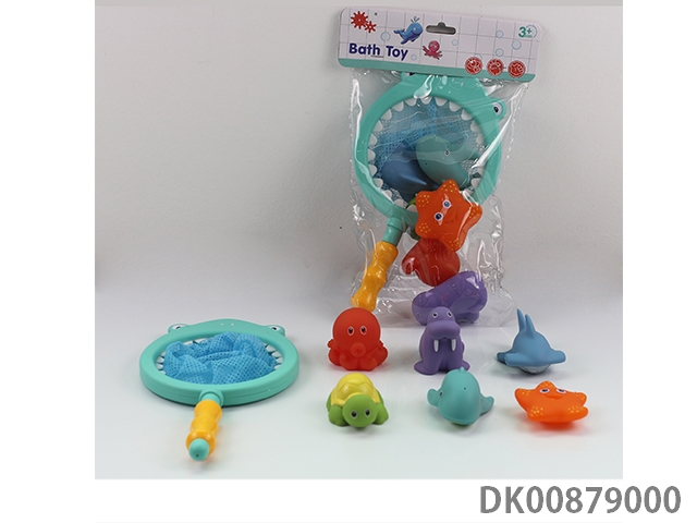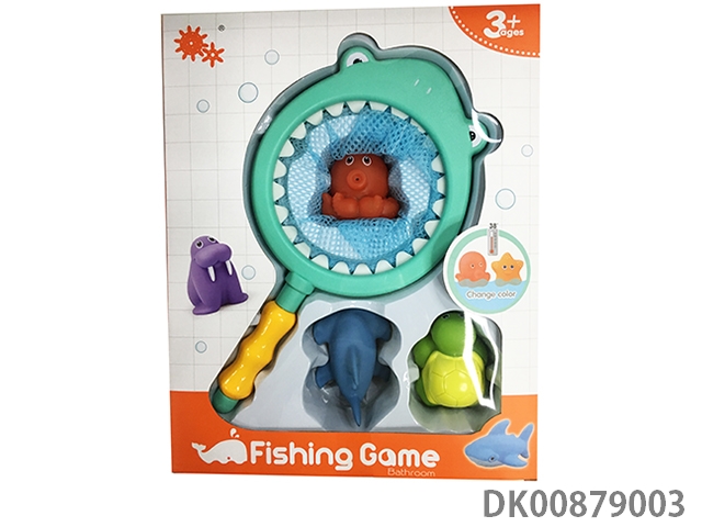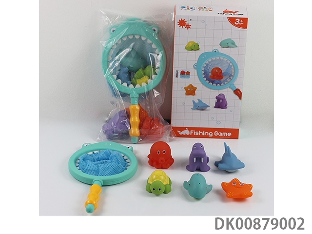 7-Piece set of fishing toys in bathroom
