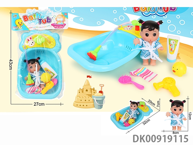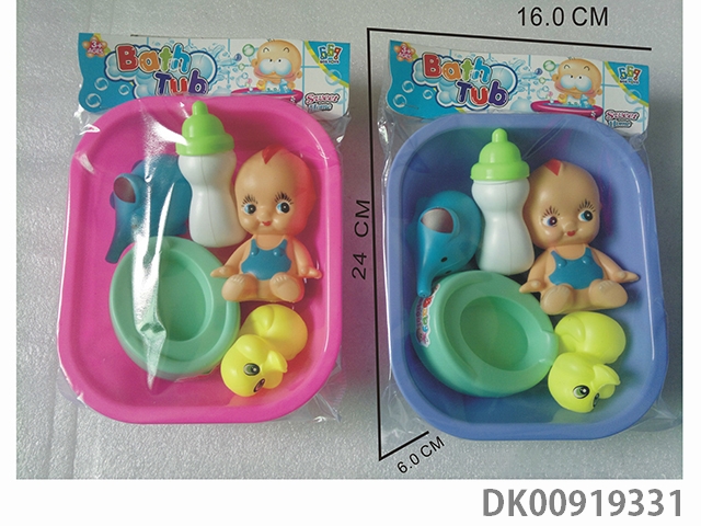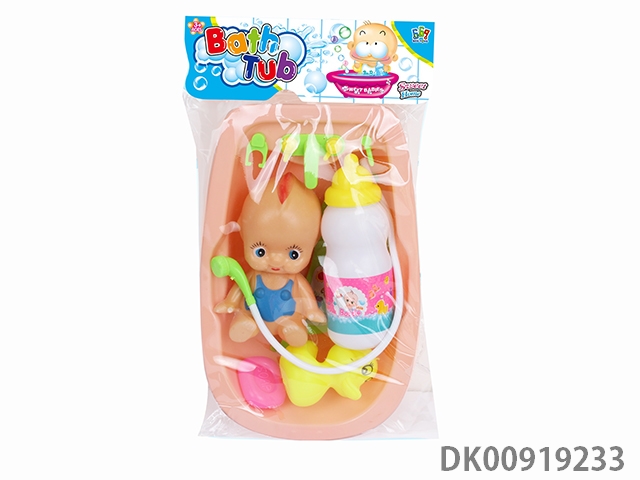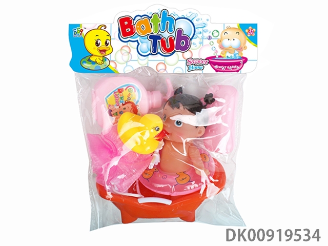 Bathtub and bottle blowing doll set