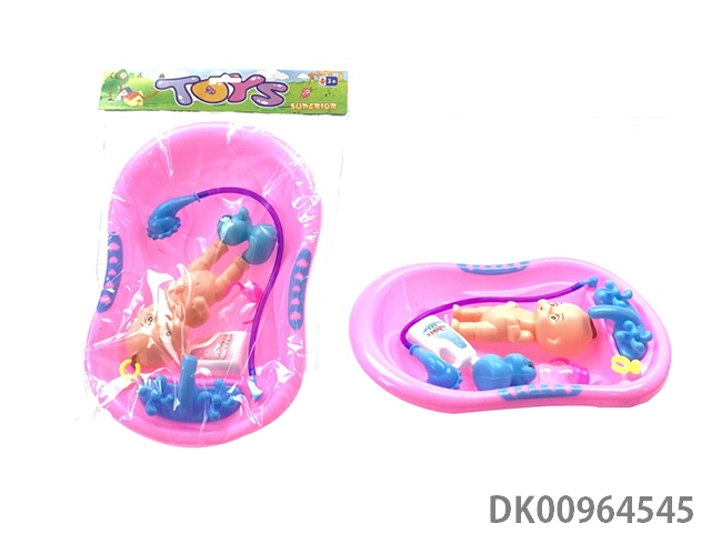 23Cm small bathtub with bottle blowing children and shower gel, milk bottle and soap