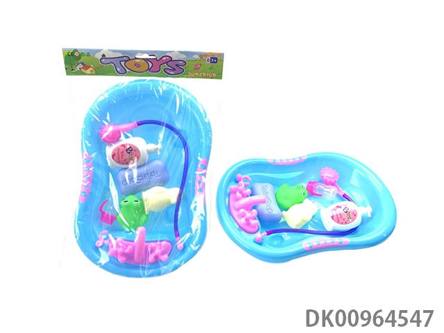 23Cm small bathtub with enamel duck and bottle blowing bath lotion, baby bottle and duck