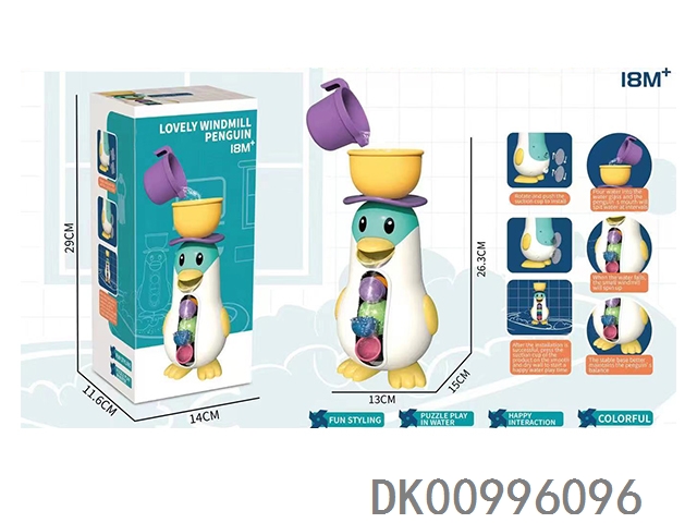 Penguin spinning water wheel