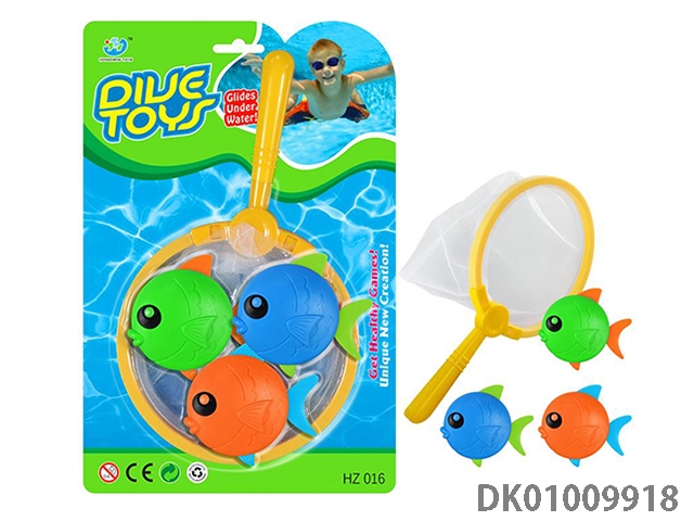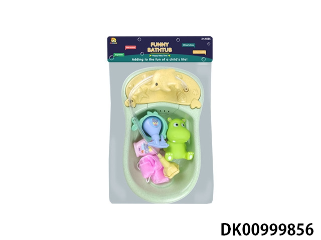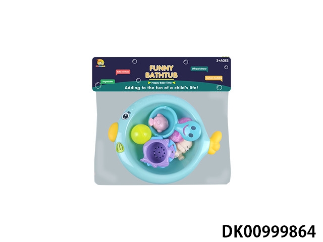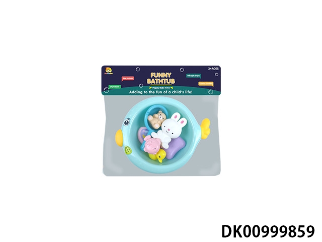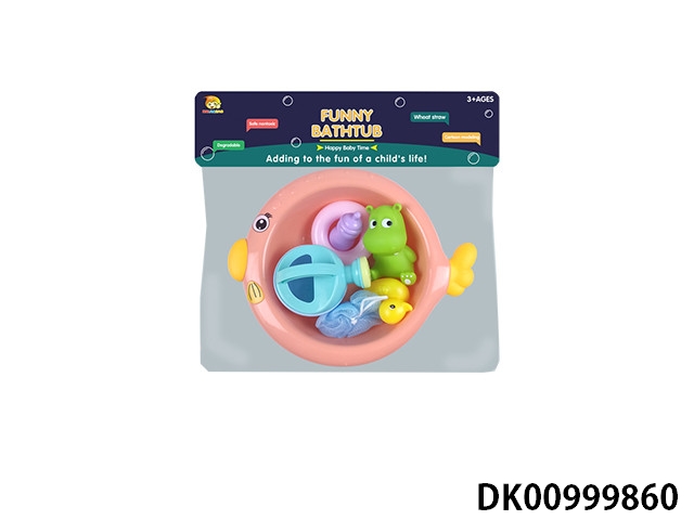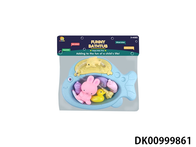 Spray fish basin with bath accessories and plastic lined animals