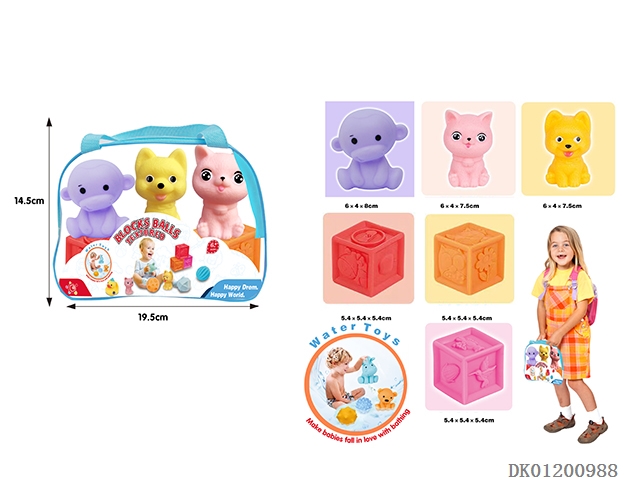 Baby bathroom soft glue block animals (6pcs)