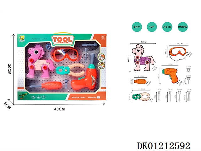 Electric drill tools and disassembly dinosaur set (2x1.5v electric drill without power)