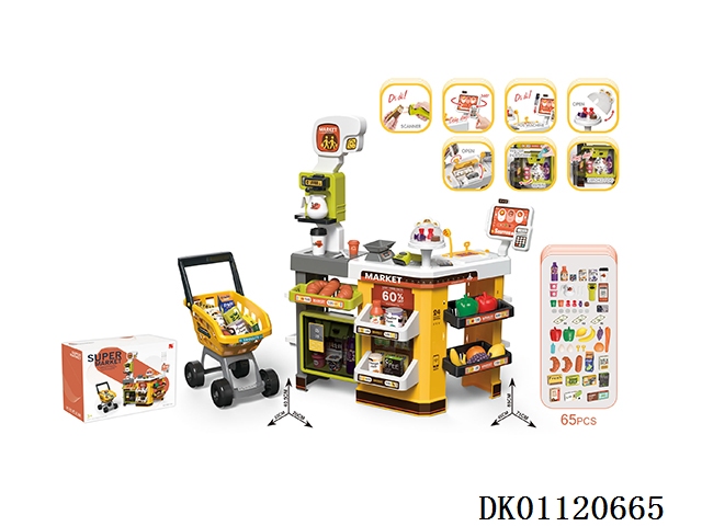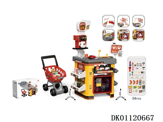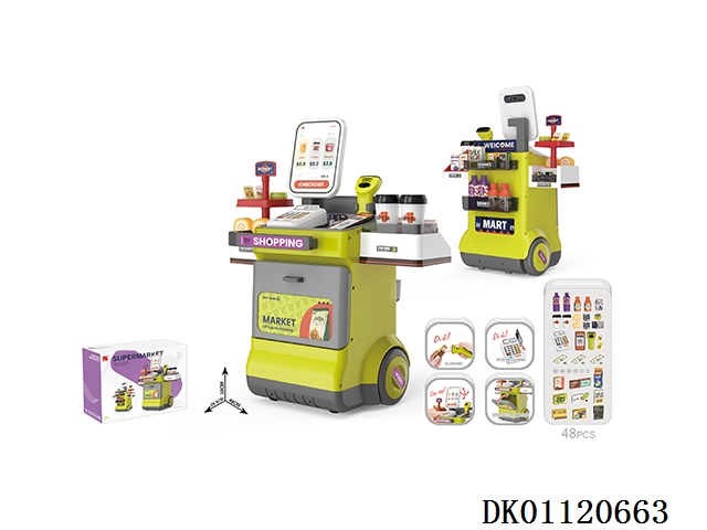 Luxury supermarket combination package and shopping cart and electric scanner, cash register and card reader, refrigerator spray (2 aaa and 5 aa do not include electricity)