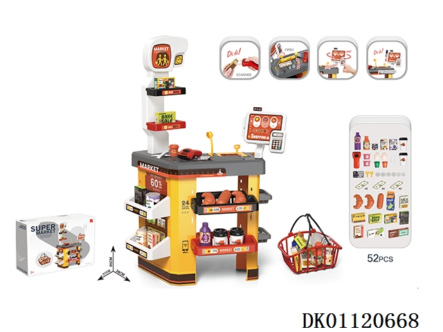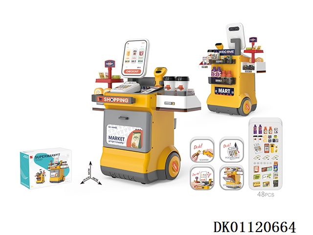Luxury supermarket combination set and shopping basket with electric scanner, cash register and card reader (2 aaa and 2 aa do not include electricity)