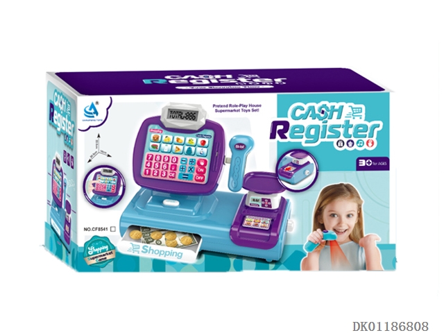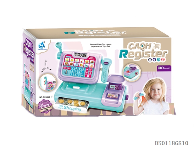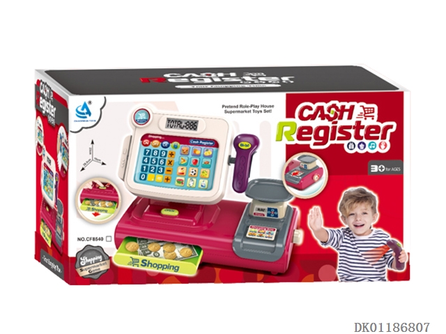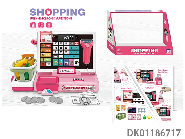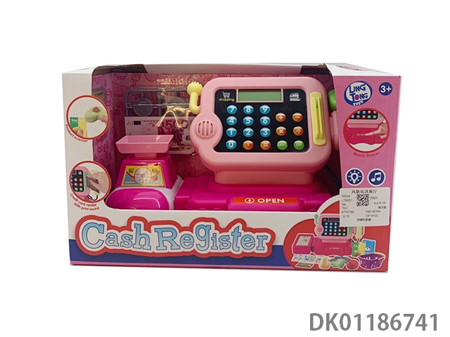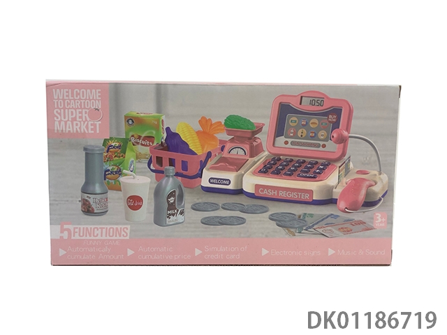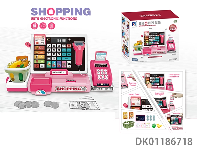 Pink cash register, conveyor belt, and pos machine (with calculator function)