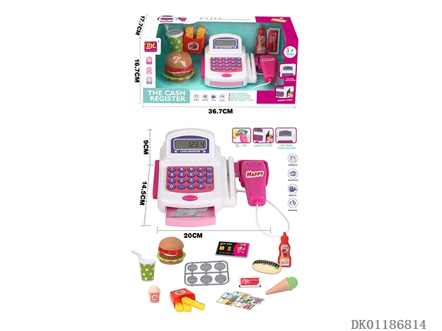 Key number calculation cash register with hamburgers and drinks, corn kernels and chips, ice cream and tomato sauce, hot dogs and coins, 2 * aa without battery (gcc)