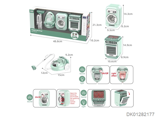 Small vacuum cleaner, washing machine, and oven set for home play -8 * aa - no electricity included