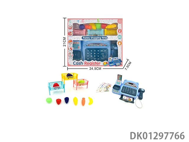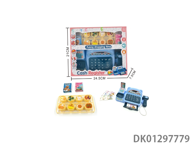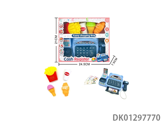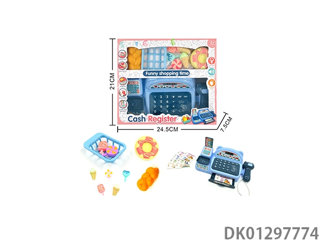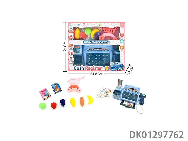 Simulated cash register with lighting, sound, and home decoration set (blue)