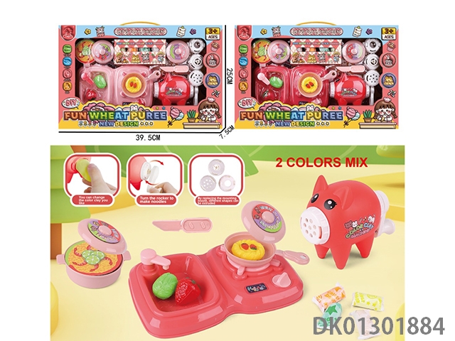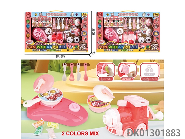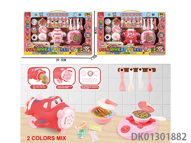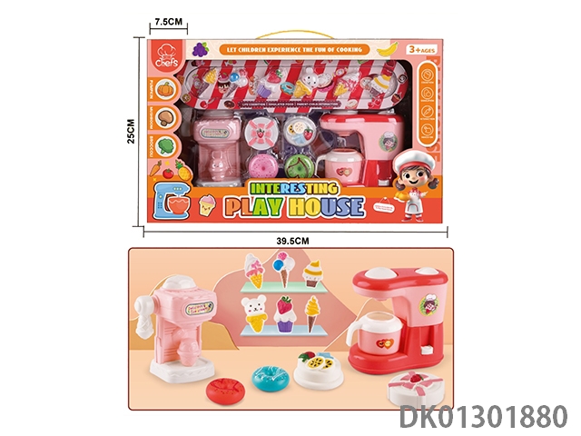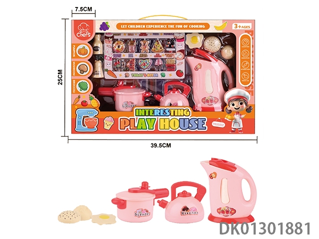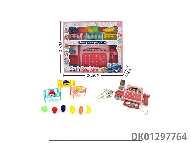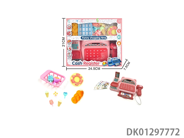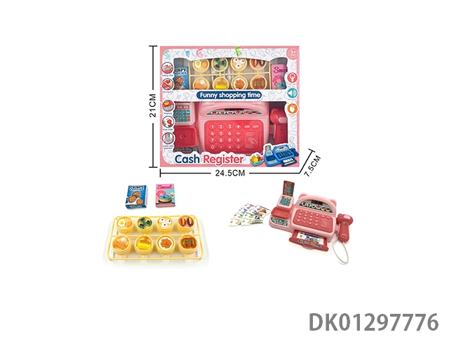 Simulated cash register with lighting, sound, and home decoration set (pink)