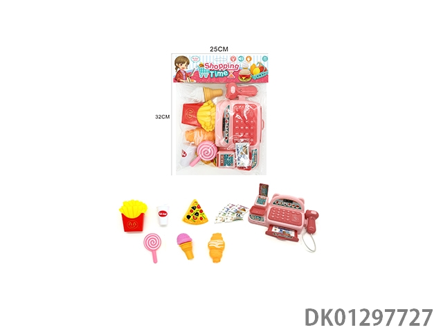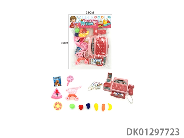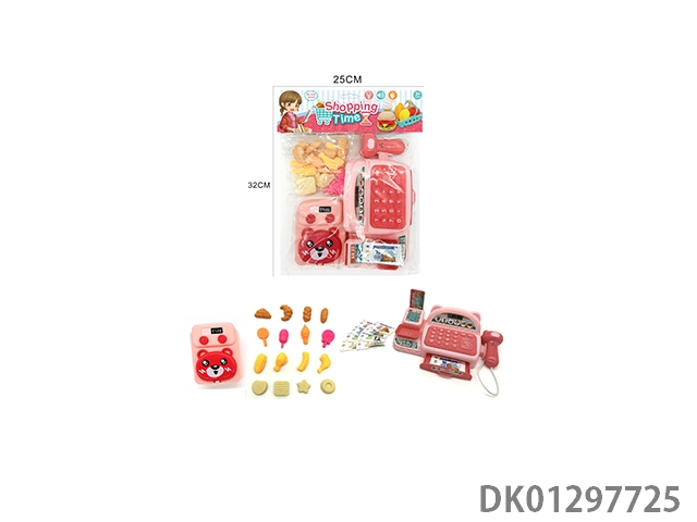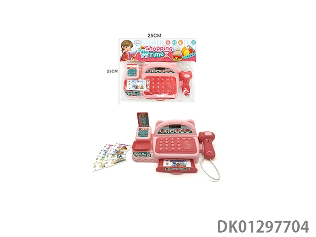 Simulated cash register with lighting, sound, and home decoration set (pink)