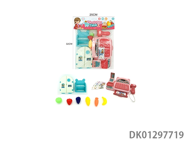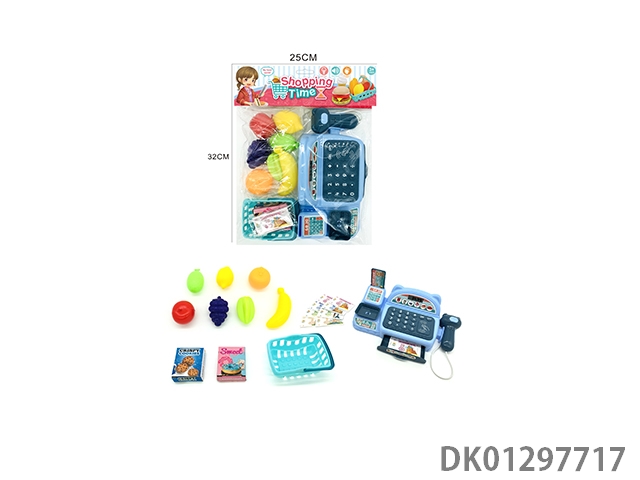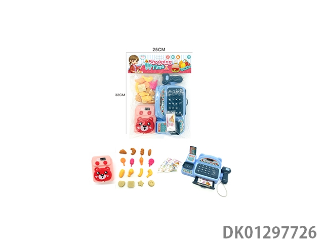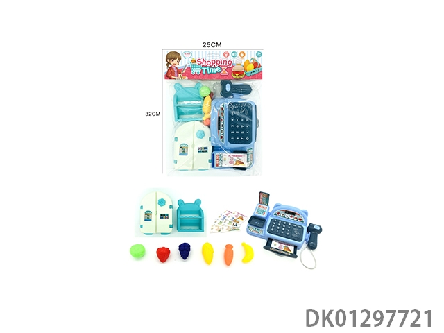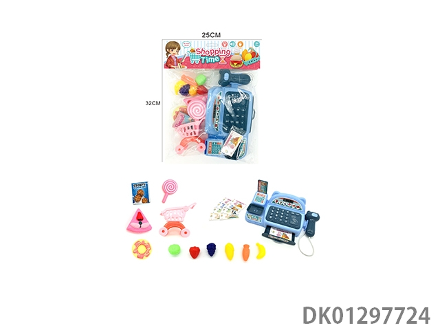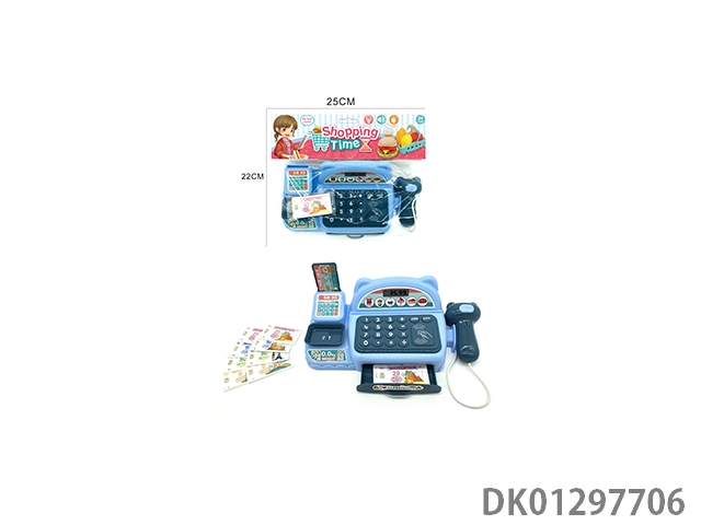 Simulated cash register with lighting, sound, and home decoration set (blue)
